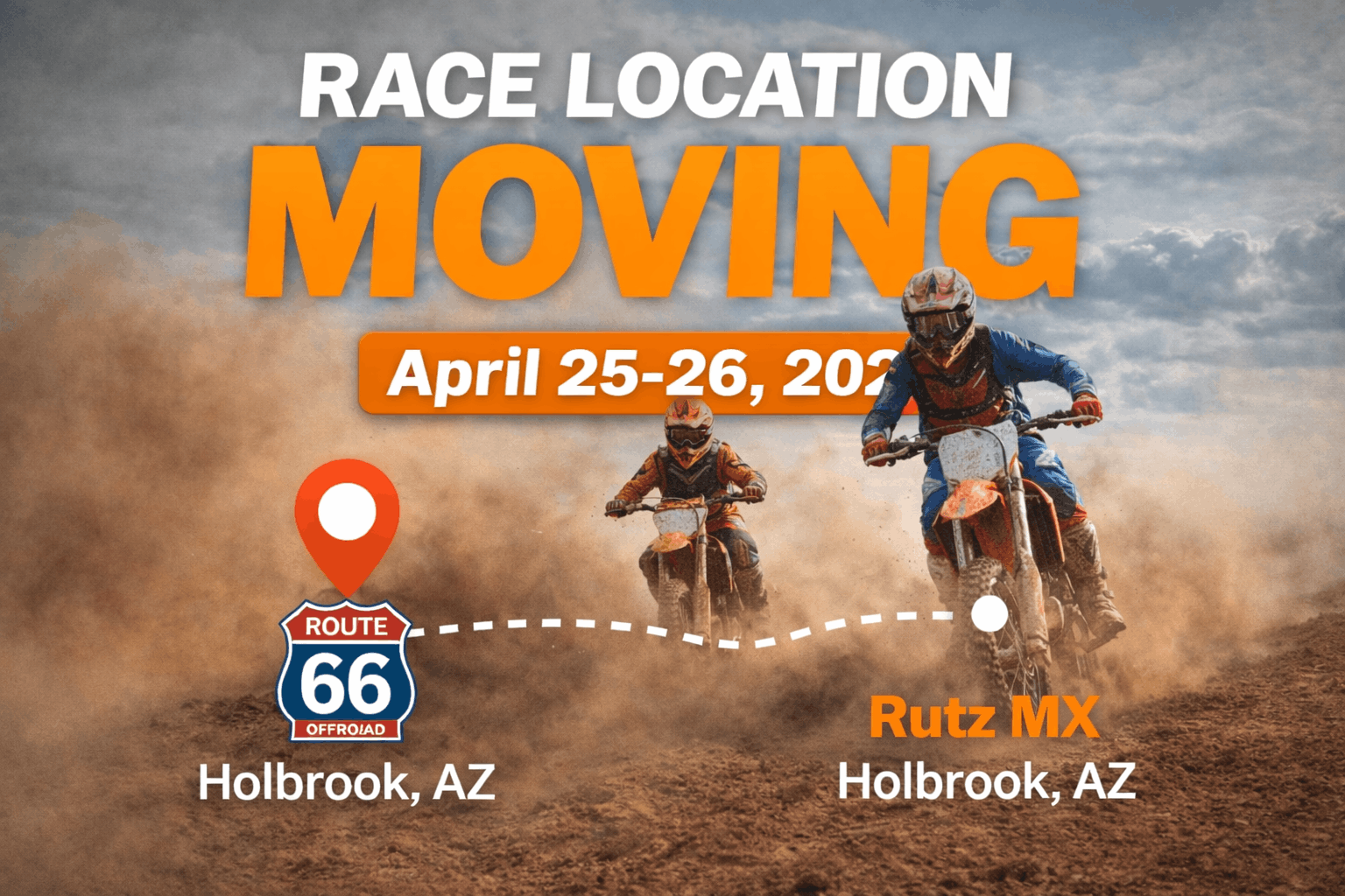 Due to these unforeseen circumstances beyond AZOP Racing’s control, the event will be relocated to Rutz MX in Holbrook, AZ.
